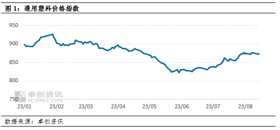 塑料價格指數(shù)形成震蕩走勢,價格重心小幅下移,8月16日收于872.5,較月初下移0.78點,實際走勢與《塑料價格指數(shù)初現(xiàn)彩虹,但難以維系》中預(yù)測結(jié)論一致。價格波動的原因在于國內(nèi)需求恢復(fù)不及預(yù)期,然而塑料產(chǎn)量隨著檢修結(jié)束進一步走高,原油市場走勢雖然跌宕起伏,但仍處于高位,對塑料市場產(chǎn)生支撐。