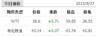 2015年8月27日國際原油價格表
