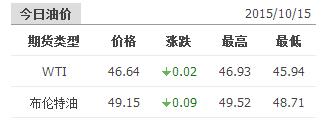 2015年10月15日國際原油價格表