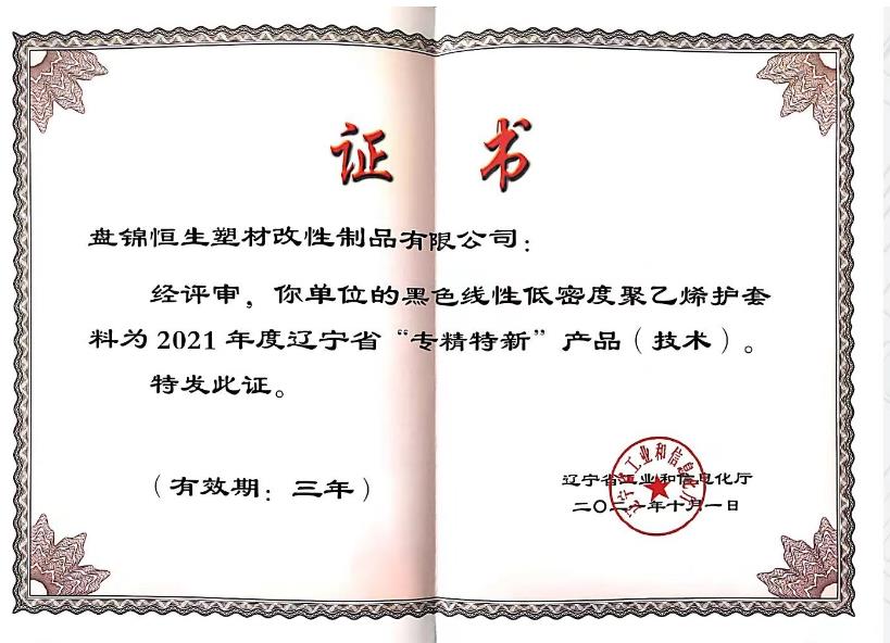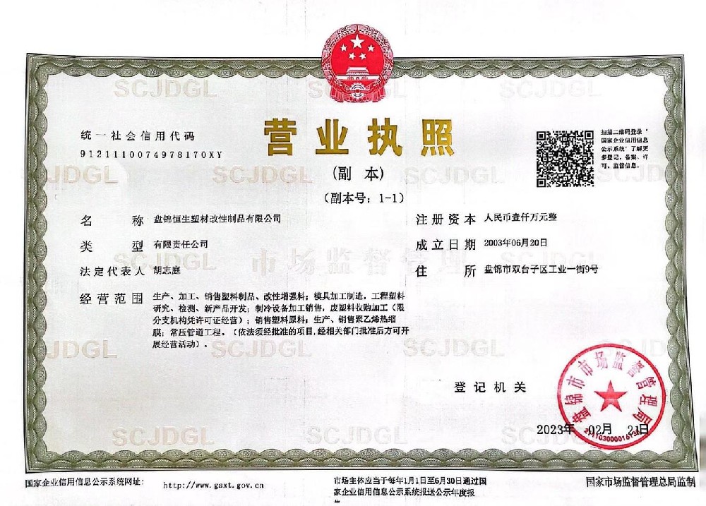 盤錦恒生塑材改性制品有限公司坐落在遼寧省盤錦精細(xì)化工產(chǎn)業(yè)開(kāi)發(fā)區(qū),總占地面積21000平方米,年生產(chǎn)能力在 3 萬(wàn)噸,是遼寧省生產(chǎn)制造全系列塑料制品的高科技研發(fā)型企業(yè)。