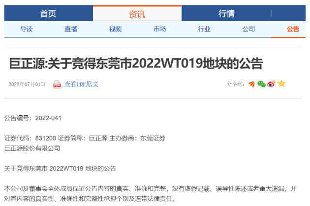 7月1日,巨正源發(fā)布"關(guān)于競(jìng)得東莞市 2022WT019 地塊的公告"。據(jù)介紹,其子公司東莞巨正源于 2022 年 6 月 29 日在東莞市公共資源交易中心競(jìng)得編號(hào)為 2022WT019 的地塊,該地塊位于東莞市沙田鎮(zhèn)和安村,用于 120萬(wàn)噸/年丙烷脫氫制高性能聚丙烯項(xiàng)目二期工程的建設(shè)。