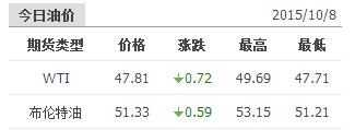 2015年10月8日國(guó)際原油價(jià)格表