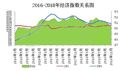 11月份國(guó)家統(tǒng)計(jì)局?jǐn)?shù)據(jù)顯示,全國(guó)居民消費(fèi)價(jià)格指數(shù)(CPI)指數(shù)102.2,環(huán)比下降0.3%,同比上漲2.2%;工業(yè)品出廠價(jià)格指數(shù) (PPI)102.7,從同比看,PPI同比上漲2.7%,漲幅較上月回落0.6%。CPI與PMI雙雙下行,表明經(jīng)濟(jì)仍然面臨下行風(fēng)險(xiǎn),尤其近期國(guó)際油價(jià)持續(xù)大跌,進(jìn)一步加大了工業(yè)領(lǐng)域未來(lái)潛在的通縮壓力。采購(gòu)經(jīng)理指數(shù)(PMI)指數(shù)50.0,同比降低3.47%,創(chuàng)2016年以來(lái)新低。