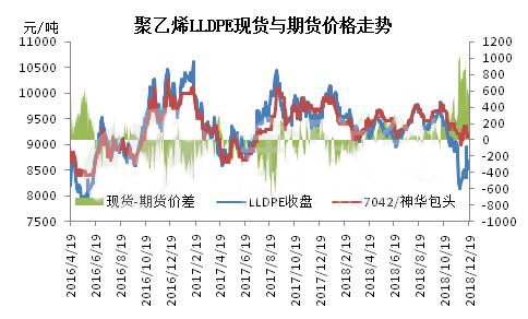 12月份聚乙烯期貨漲勢(shì)利于現(xiàn)貨走勢(shì)。連塑L1905合約自11月底跌至新低后觸底反彈,呈震蕩上行走勢(shì),19日漲至8715最高。短期來(lái)看,日線下方均線出現(xiàn)金叉,短期連塑存繼續(xù)上行走勢(shì);但持倉(cāng)方面永安期貨空單占據(jù)優(yōu)勢(shì),加之連塑收于三連陽(yáng),因此整體漲幅有限,不排除技術(shù)性回落可能?,F(xiàn)貨方面,雖期貨面持續(xù)上行,帶動(dòng)石化庫(kù)存有所消耗,但并未從實(shí)質(zhì)性帶動(dòng)現(xiàn)貨面氣氛好轉(zhuǎn),下游心態(tài)依舊謹(jǐn)慎,多隨用隨拿,出貨平平。